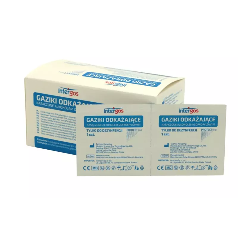 Gaziki włókninowe, nasączone 70% alkoholem izopropylowym. Przeznaczone do dezynfekcji skóry przed iniekcjami, szczepieniami czy pobieraniem krwi, na drobne skaleczenia oraz podczas innych zabiegów kosmetycznych czy medycznych. Sprawdzą się również do dezynfekcji niewielkich powierzchni.
