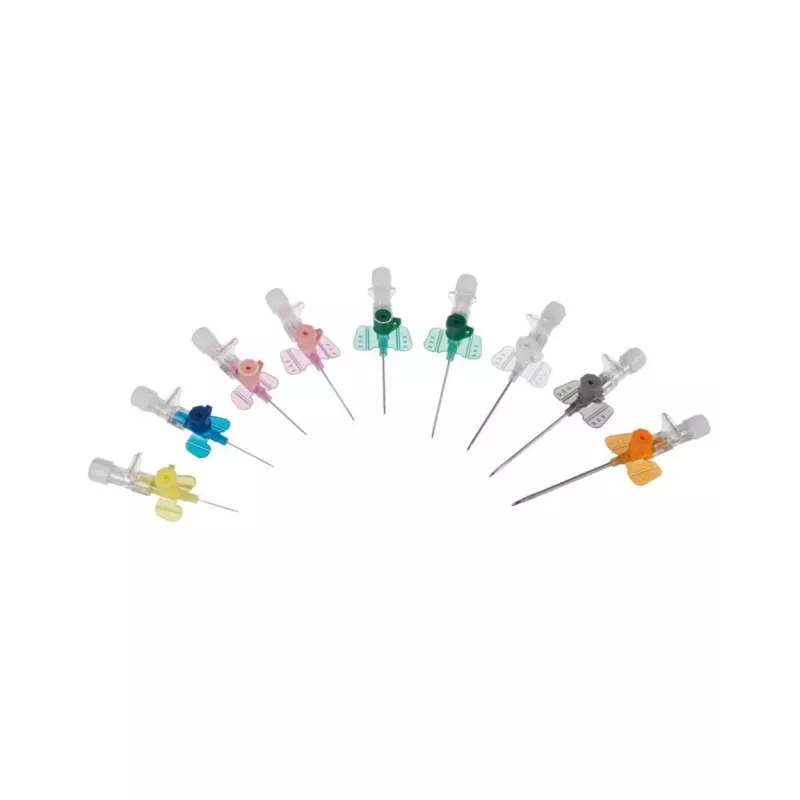 Rozmiar wenflonu: 1.2x19 mm (18G), różowa, 1.1x19 mm, (19G), jasno żółty, 0.90x19 mm, (20G), żółta, 0.80x19mm, (21G), zielona, 0.70x19 mm, (22G), czarna, 0.60x19 mm, (23G), niebieska, 0.50x19 mm, (25G), pomarańczowa